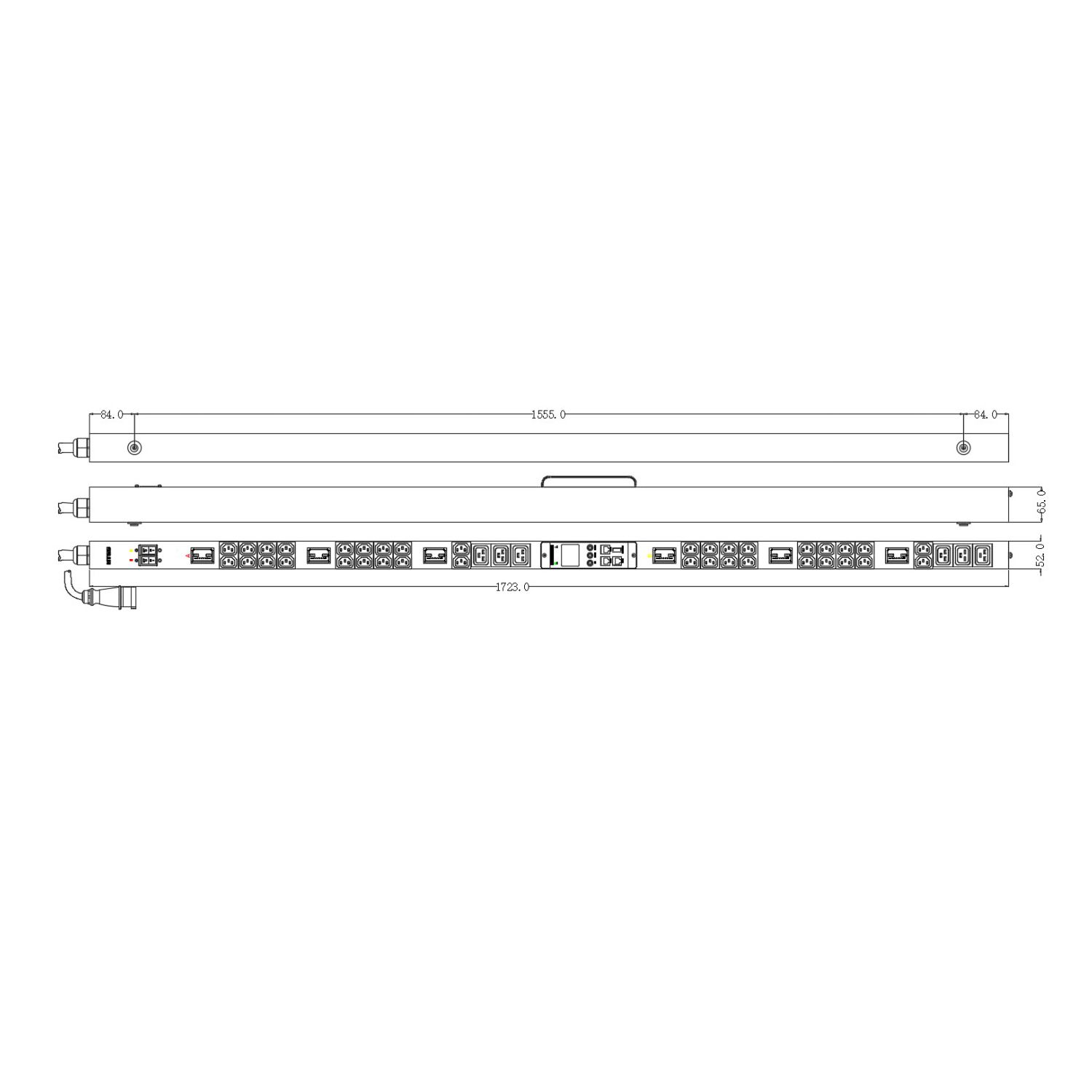 Блок распределения питания NTSS Metered Plus, 1ф32А, 7.4кВт, 2 автоматических выключателя, (36)С13, (6)С19, 3м кабель с вилкой IEC 60309, 1782х65х65 мм