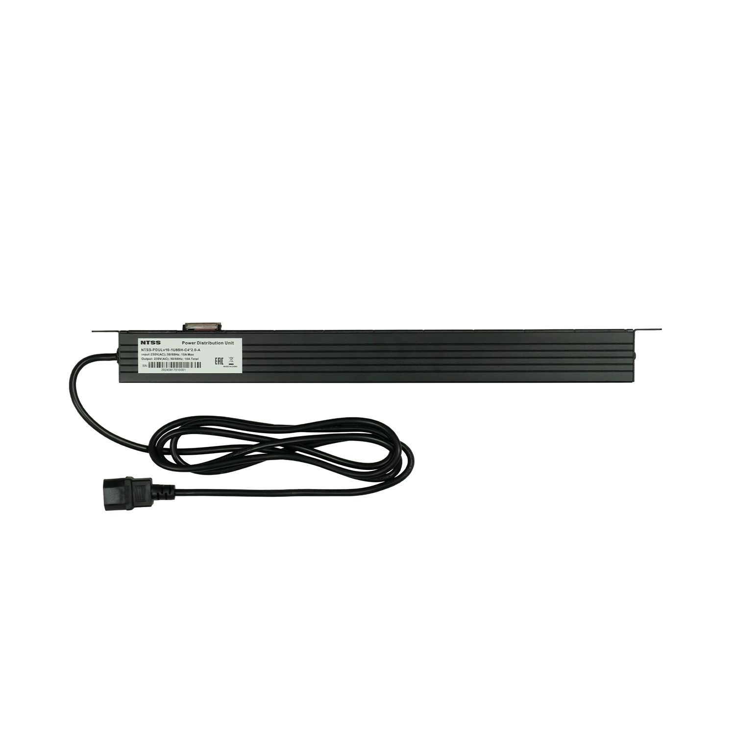Блок розеток NTSS, 19", 1U, алюминий, 1ф10A, 2.3кВт, (8) Schuko, выкл. с подсв.и крыш., 2м каб., вх. С14