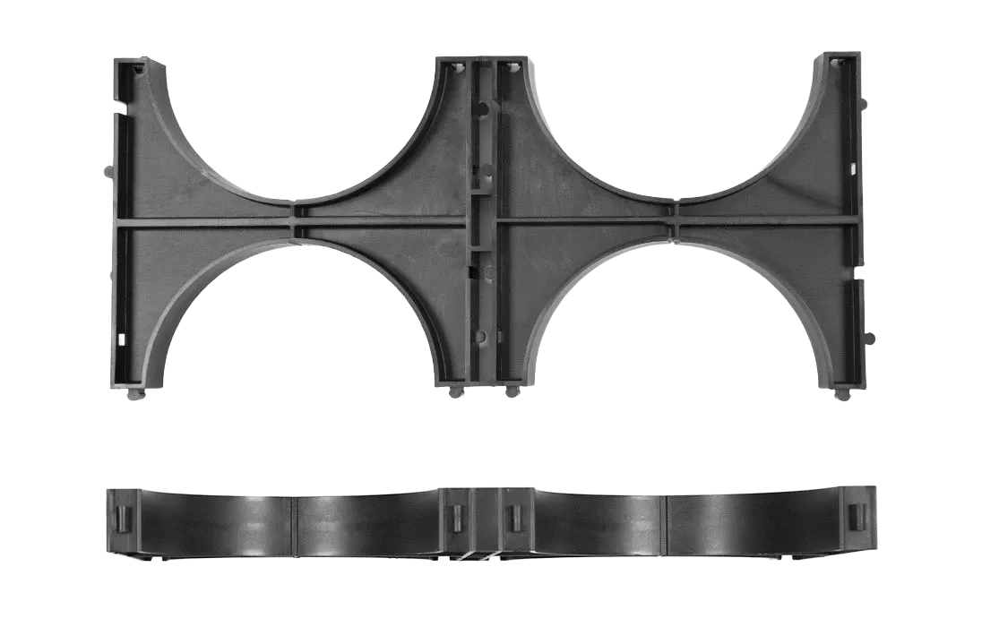 Предназначен для закрепления труб в единый блок. Это позволяет сохранить заданное расстояния между гибкими, жесткими или дренажными гофрированными двустенными трубами одного диаметра, препятствуя их смещению при засыпке песком.