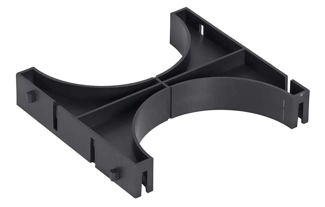 Предназначен для закрепления труб в единый блок. Это позволяет сохранить заданное расстояния между гибкими, жесткими или дренажными гофрированными двустенными трубами одного диаметра, препятствуя их смещению при засыпке песком.