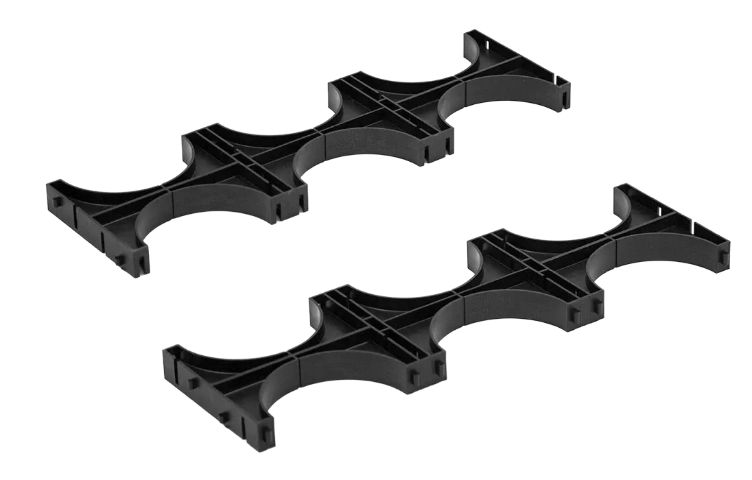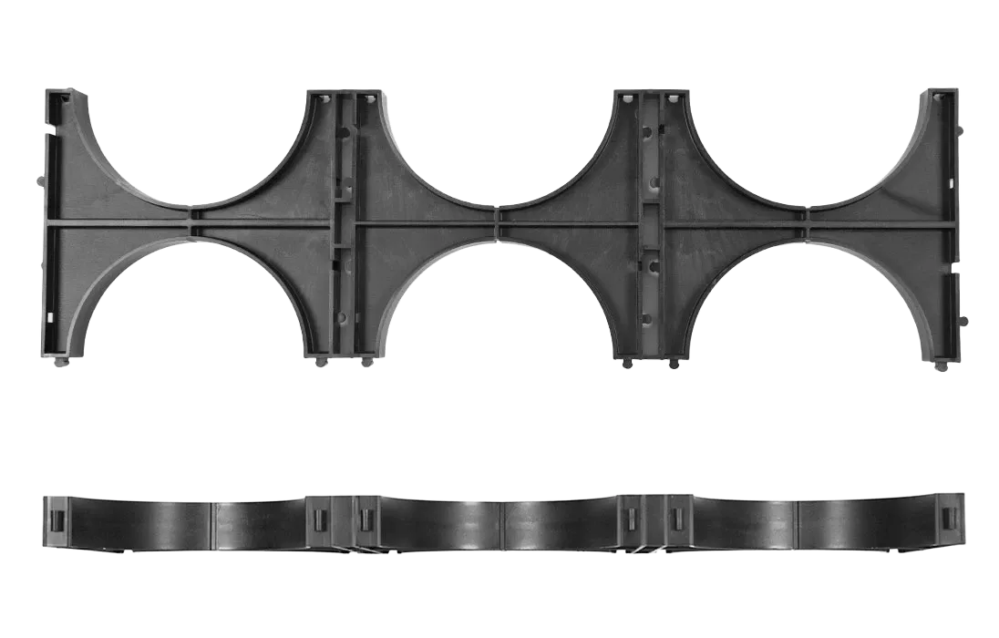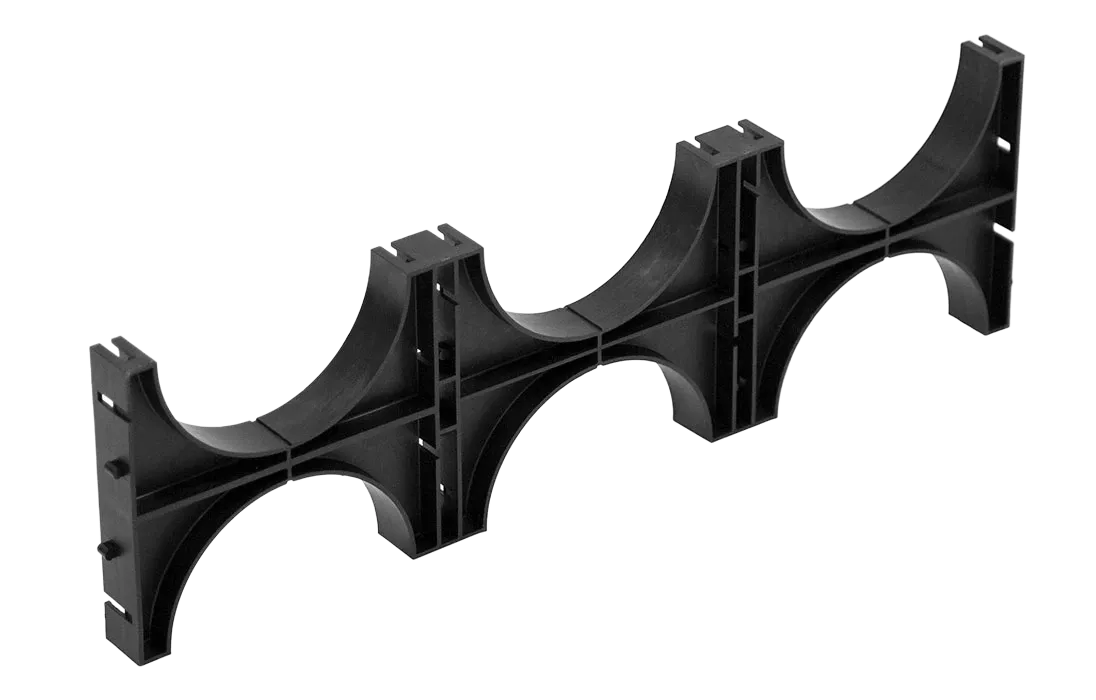 Предназначен для закрепления труб в единый блок. Это позволяет сохранить заданное расстояния между гибкими, жесткими или дренажными гофрированными двустенными трубами одного диаметра, препятствуя их смещению при засыпке песком.