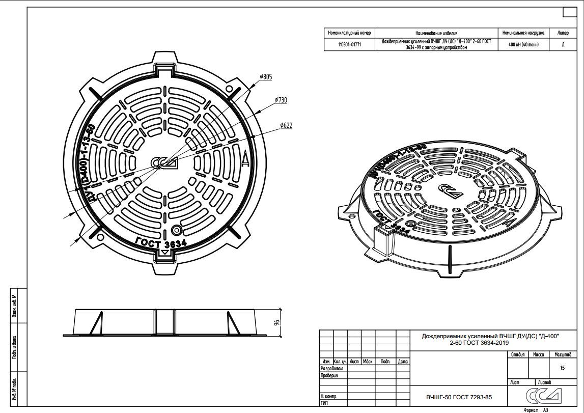 Дождеприемник усиленный ВЧШГ ДУ1(Д400)-1-13-60 ВЧ-50, ГОСТ 3634-2019.