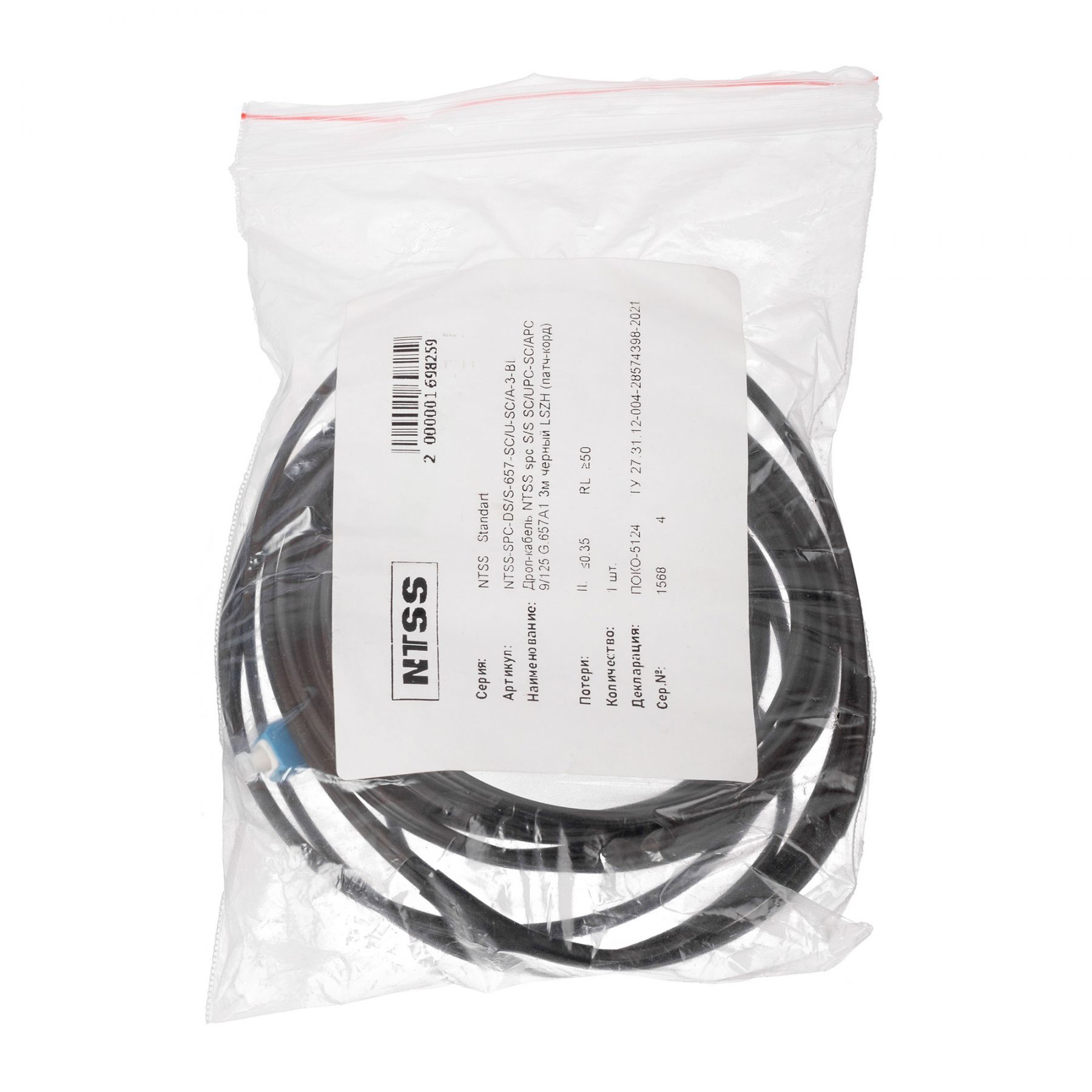 Дроп-кабель NTSS spc SC/UPC-SC/UPC G.657A1 170м LSZH S/S стеклопруток, ВСЭ стеклопруток, черный (патч-корд)
