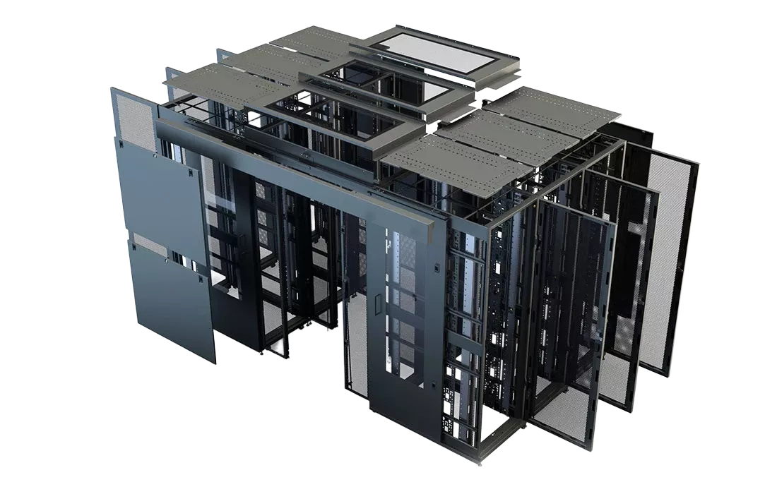 Предназначена для изоляции потоков холодного и горячего воздуха. Дверь двухстворчатая раздвижная со стеклянными окнами устанавливается на входе в изолированный коридор, шириной от 900 до 1200 мм. Крепится винтами непосредственно к шкафам.