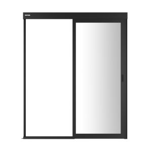 Комплект входной группы шириной 1000мм 48U с одностворчатой дверью представляет из себя каркас из толстого алюминиевого профиля с установленном на нем механизме раздвижения. Такие комплекты используются как правило для ограничения воздушного потока в системах изоляции с одним рядом шкафов, точнее в данном случае без правого ряда если смотреть снаружи – дверь отъезжает влево на существующий ряд шкафов. Так же такие группы применяются в случаях организации узких 1000мм между рядами горячих коридоров (2 ряда шкафов), встречающихся как при установке рядных кондиционеров в систему, так и в вариантах с построением изоляции с вертикальными боковыми стенками типа «факел». Высота 48U предполагает, что используется дверь позволяющая провезти через нее шкаф высотой от 2360мм и ниже, указанная высота соответствует большинству 48U шкафов на роликах. Разумеется, при типовом построении входная группа служит местом крепления и опоры для горизонтальных балок системы, идущих над шкафами, а в случае однорядных систем то и метом крепления профиля, идущего по стене или над панелями-заглушками. Входная дверь при необходимости может быть заблокирована при помощи ключа для крестового механизма замка.