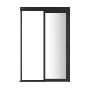 Комплект входной группы шириной 800мм 48U с одностворчатой дверью представляет из себя каркас из толстого алюминиевого профиля с установленном на нем механизме раздвижения. Такие комплекты используются как правило для ограничения воздушного потока в системах изоляции с одним рядом шкафов, точнее в данном случае без правого ряда если смотреть снаружи – дверь отъезжает влево на существующий ряд шкафов. Так же такие группы применяются в случаях организации узких 800мм между рядами горячих коридоров (2 ряда шкафов), встречающихся как при установке рядных кондиционеров в систему, так и в вариантах с построением изоляции с вертикальными боковыми стенками типа «факел». Высота 48U предполагает, что используется дверь позволяющая провезти через нее шкаф высотой от 2360мм и ниже, шириной 600-750мм, указанная высота соответствует большинству 48U шкафов на роликах. Разумеется, при типовом построении входная группа служит местом крепления и опоры для горизонтальных балок системы, идущих над шкафами, а в случае однорядных систем то и метом крепления профиля, идущего по стене или над панелями-заглушками.