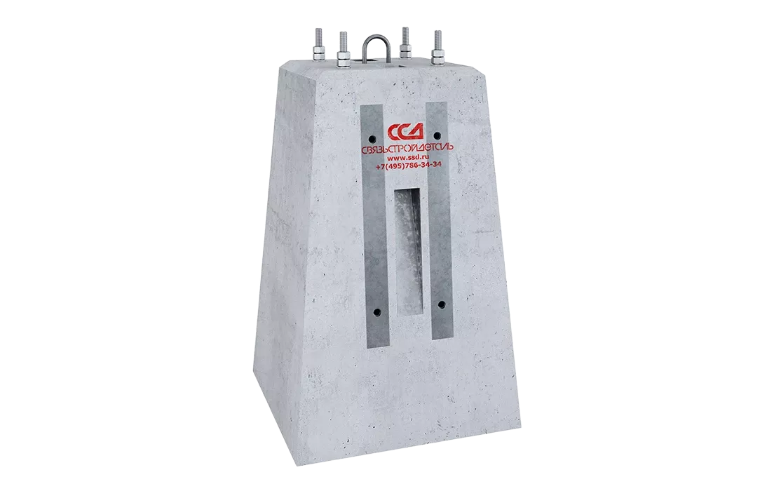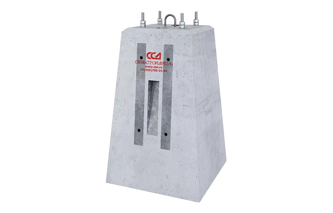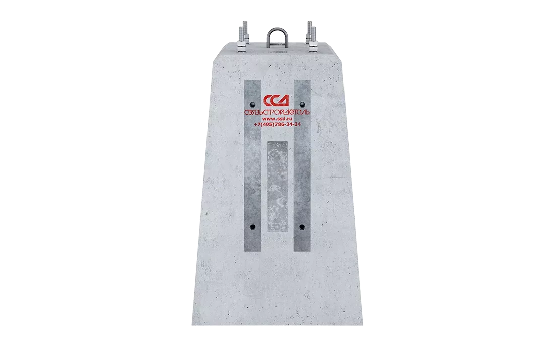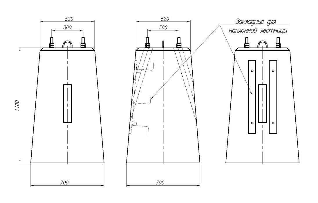 Представляет собой железобетонный блок с двумя закладными устройствами (квадратными трубами) и закладными элементами для крепления складной лестницы. Болты на которые накручена гайка, выступают над поверхностью блока на 100 мм.