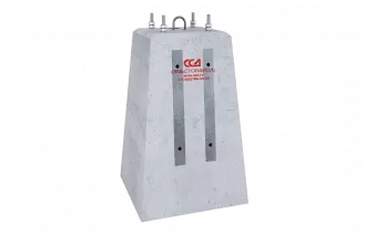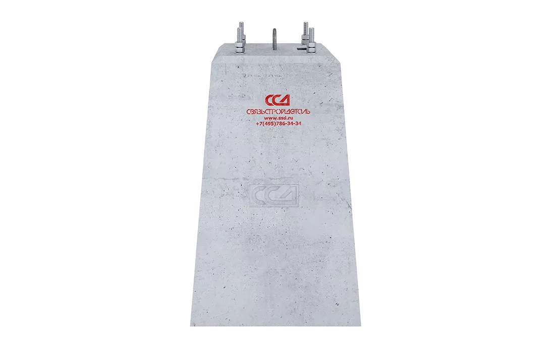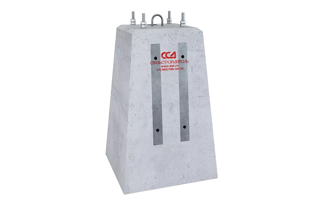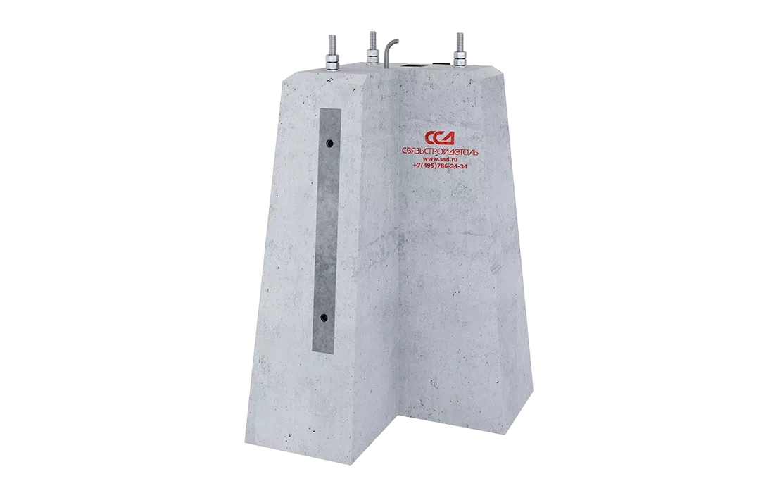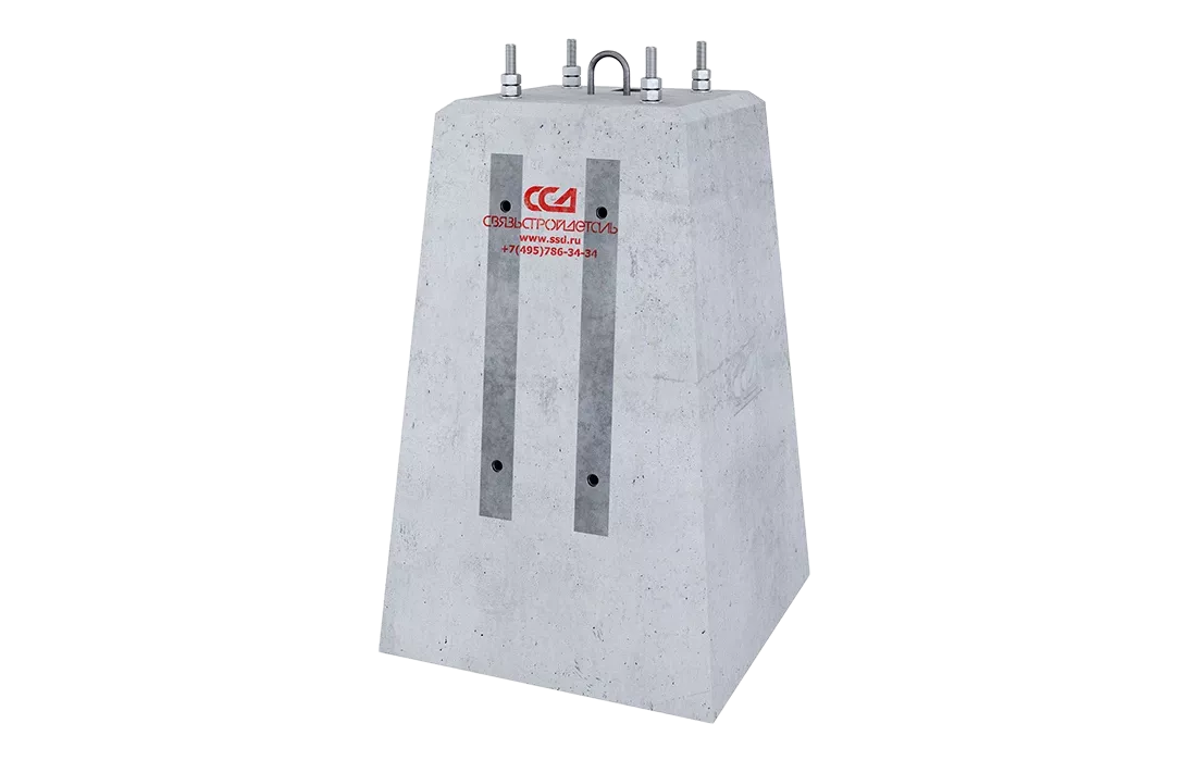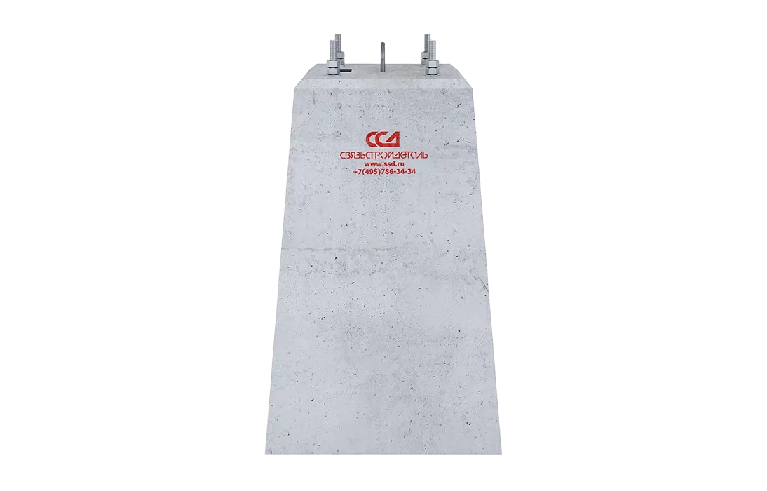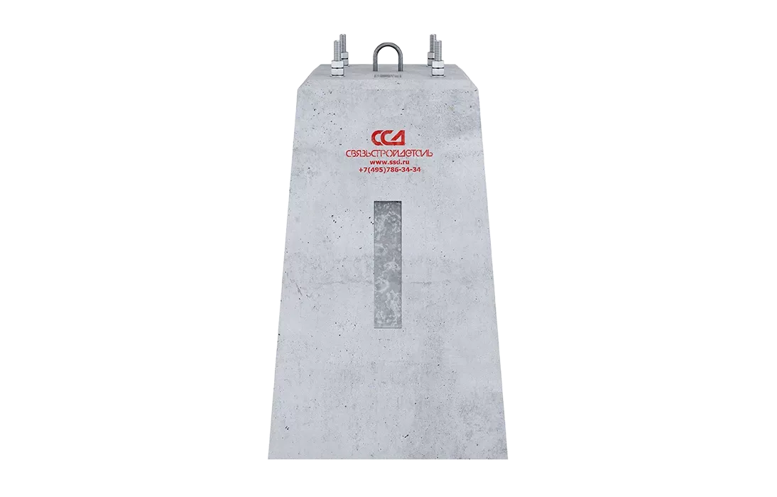 Представляет собой железобетонный блок с закладным устройством (квадратной трубой) и закладными элементами для крепления наклонной лестницы. Болты на которые накручена гайка, выступают над поверхностью блока на 100 мм.