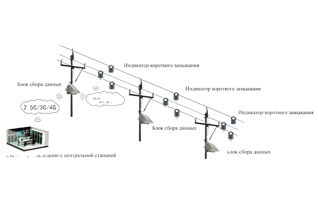 Связь:433MHz от индикаторов на блок сбора данных; 2.5G/3G/4G от блока сбора данных в систему SCADA