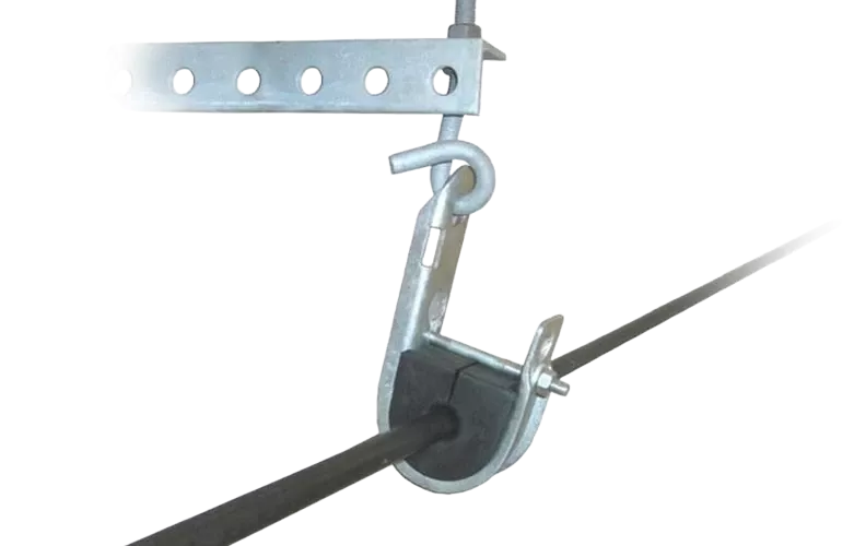 Зажим используется для подвески кабелей ADSS с внешним диаметром от 15 до 20 мм на проходных опорах (столбах) при длине пролетов линии до 100 м. Имеет ширину 50 мм.