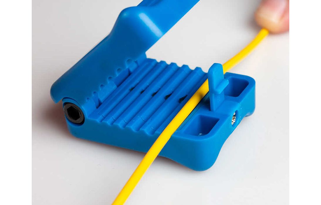 Стриппер для продольной резки оптических модулей, 6 пазов (от 1,2 до 3,3 мм). Применяется для разрезания оптического модуля и получения доступа к оптическим волокнам. Имеет 6 прецизионных канавок, для буферных покрытий разного диаметра.