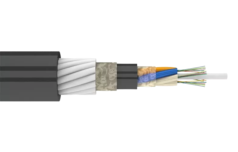 Конструктивно представляет собой повив оптических модулей вокруг стеклопластикового прутка, покрытый промежуточной полиэтиленовой оболочкой, броней из стеклопластиковых прутков и наружной оболочкой из полиэтилена средней плотности. Свободное пространство в оптических модулях, в сердечнике кабеля, а также в бронепокрове заполнено гидрофобным гелем.