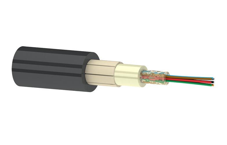 Центральный оптический модуль покрыт подушкой из упрочняющих стеклонитей и защищен наружной оболочкой из полимерного материала. Свободное пространство в оптическом модуле заполнено гидрофобным гелем.