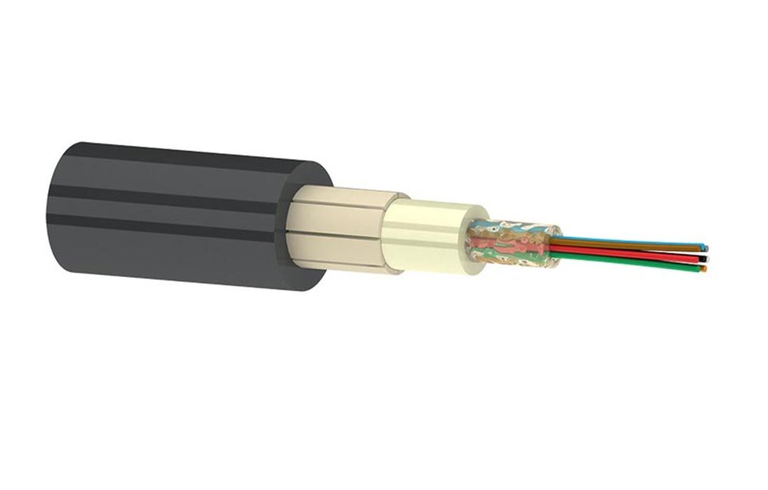 Центральный оптический модуль покрыт подушкой из упрочняющих стеклонитей и защищен наружной оболочкой из полимерного материала. Свободное пространство в оптическом модуле заполнено гидрофобным гелем.