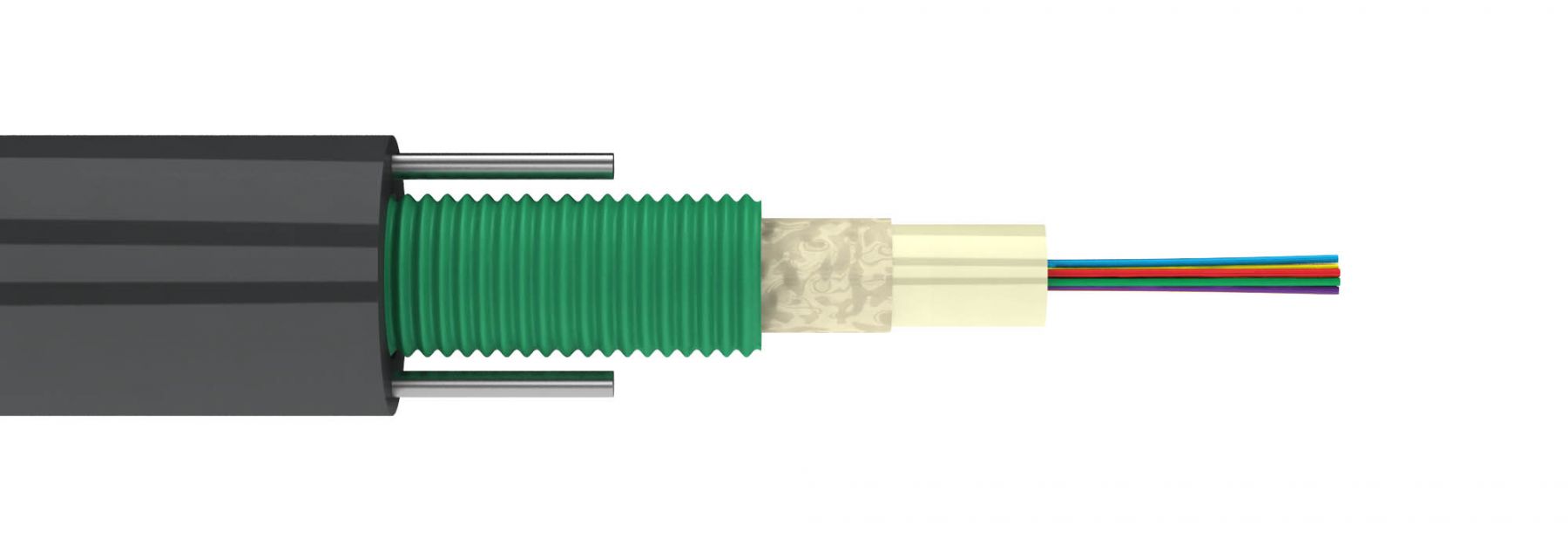 Конструктивно представляет собой центральный оптический модуль, защищенный стальной гофрированной лентой и наружной оболочкой из полиэтилена средней плотности, в которую встроены силовые элементы из стальных проволок. Свободное пространство в оптическом модуле и под гофрированной лентой заполнено гидрофобным гелем.