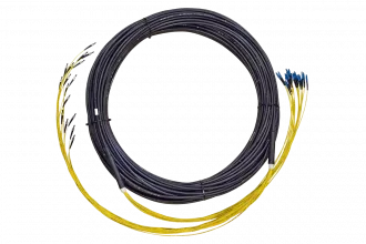 Кабельная сборка КС-ВХ-08-SM-06/20/20-8SC/APC400х-8SC/UPC260х-10м представляет из себя отрезок волоконно-оптического кабеля все волокна которого оконцованы разъемами в заводских условиях, наружный диаметр выводов с обоих сторон составляет 2,0мм. Специально разработанный узел, устанавливаемый в месте перехода от кабельной части к одноволоконным выводам обеспечивает надежную механическую и гидроизоляционную защиту.