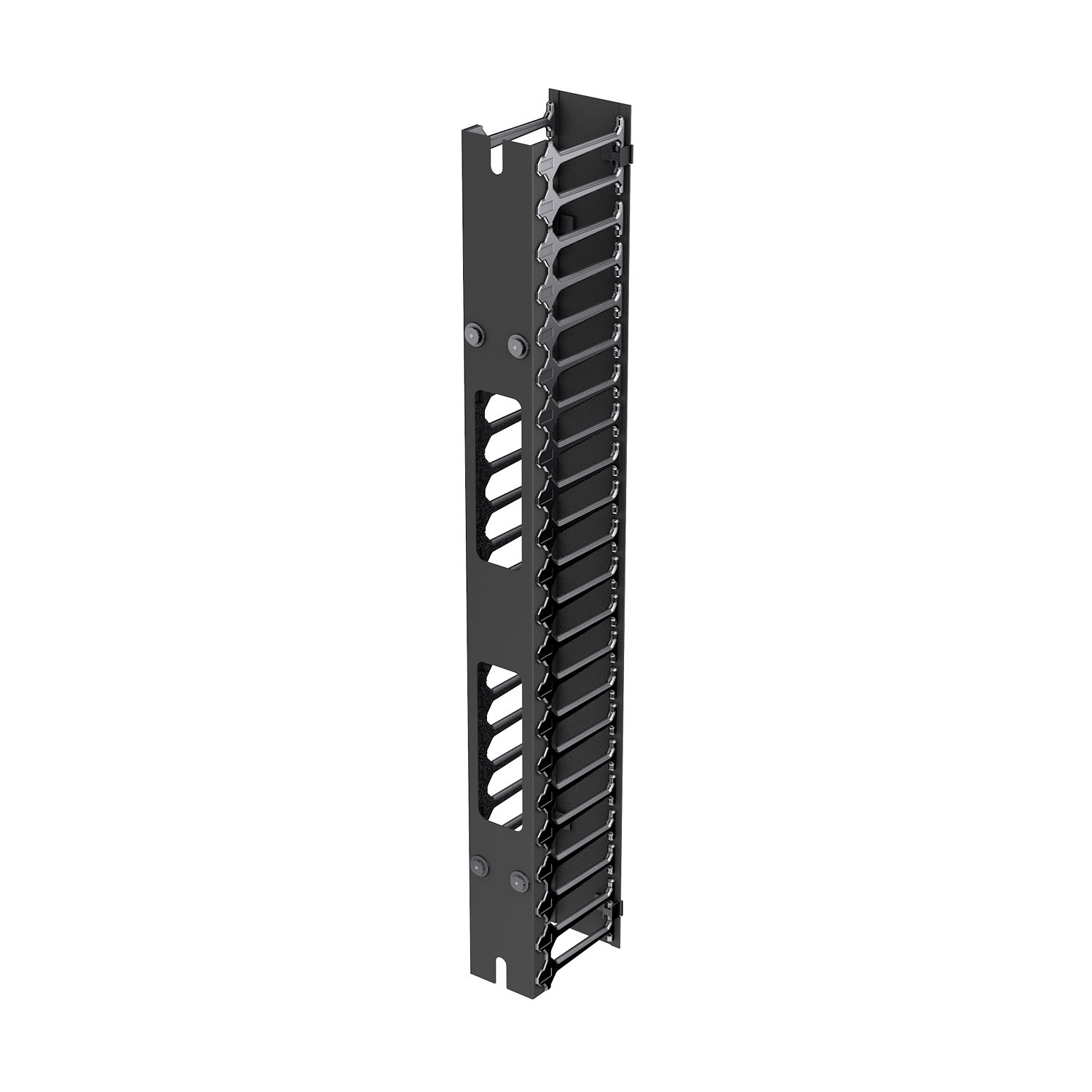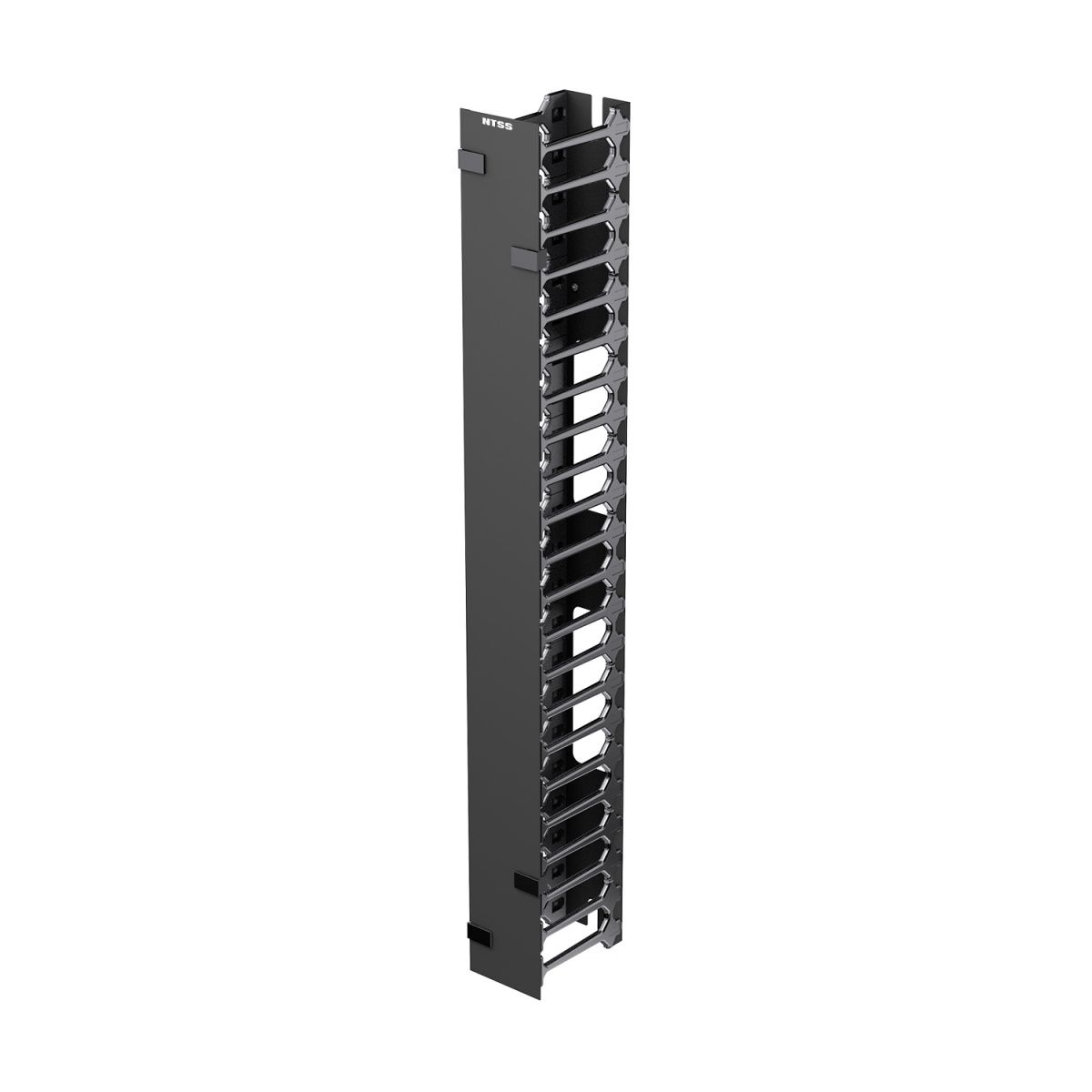 Вертикальный кабельный органайзер NTSS с пластиковым пальцами и крышкой Zero-U предназначен для распределения кабельных потоков. Сегменты пластиковых пальцев на стальном основании со стальной крышкой предназначены для защиты и организации медных и оптических патч-кордов. Может устанавливаться на лоток для Zero-U или на фронтальную поверхность 19" профилей в шкафах ПРОЦОД шириной 750 и 800 мм. Схема установки и крепления совпадает со всеми аксессуарами Zero-U. Основные кабельные потоки переносятся из зоны активного оборудования в переднюю и боковые зоны пространства шкафов. Устанавливается без использования инструмента.