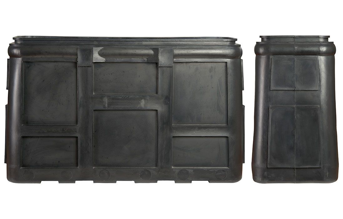 Камера имеет в сечении трапециевидную форму и состоит из двух цельнолитых элементов – крышки и корпуса. Боковые и торцевые поверхности относительно центральной оси имеют наклон 3°. Такая конструкция придает дополнительную прочность, а также препятствует выталкиванию камеры из грунта при его выпучивании или подвижке. На боковых поверхностях камеры расположены ниши разных размеров для ввода полиэтиленовых труб различных диаметров, которые разделены мощными ребрами жесткости. Торцевые поверхности имеют ниши расположенные с внутренней стороны камеры.