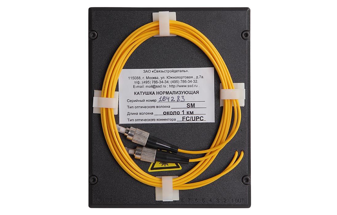 Компактная нормализующая (компенсационная) катушка предназначена для нормализации модового состава излучения вводимого в измеряемую линию и для устранения влияния на результаты измерений ближней мертвой зоны оптического рефлектометра.