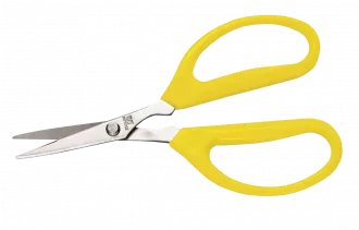 Ножницы для резки упрочняющих нитей кабеля (кевлар, арамид, тварон). Лезвия ножниц выполнены из закаленной нержавеющей стали, на одном лезвии нанесены мелкие зубцы, способствующие захвату и удержание нитей при резке. Для удобства работы «ушки» ножниц увеличены в размерах.