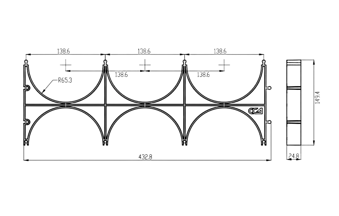 Кластер представляет собой решетчатое изделие с ложементами для укладки труб, выполненное из пластика. На корпусе кластера имеются специальные выступы и пазы для соединения нескольких кластеров в единый блок при прокладке большего количества каналов.