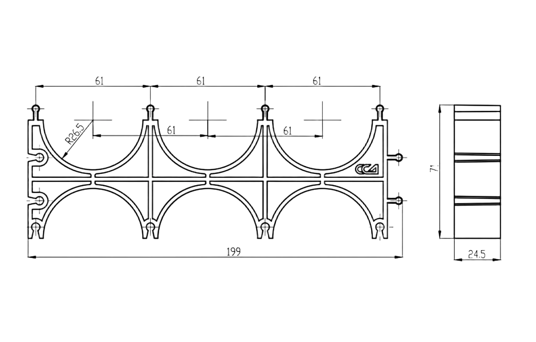 Кластер представляет собой решетчатое изделие с ложементами для укладки труб, выполненное из пластика. На корпусе кластера имеются специальные выступы и пазы для соединения нескольких кластеров в единый блок при прокладке большего количества каналов.