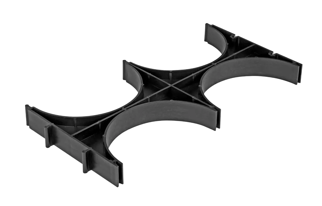 Использование кластеров при одновременной прокладке нескольких труб в одной траншее обеспечивает выдерживание равного заданного расстояния между трубами, препятствуя их смещению при засыпке песком, исключает возможность заломов плети трубопроводов, тем самым предупреждая проблемы с протяжкой кабеля.