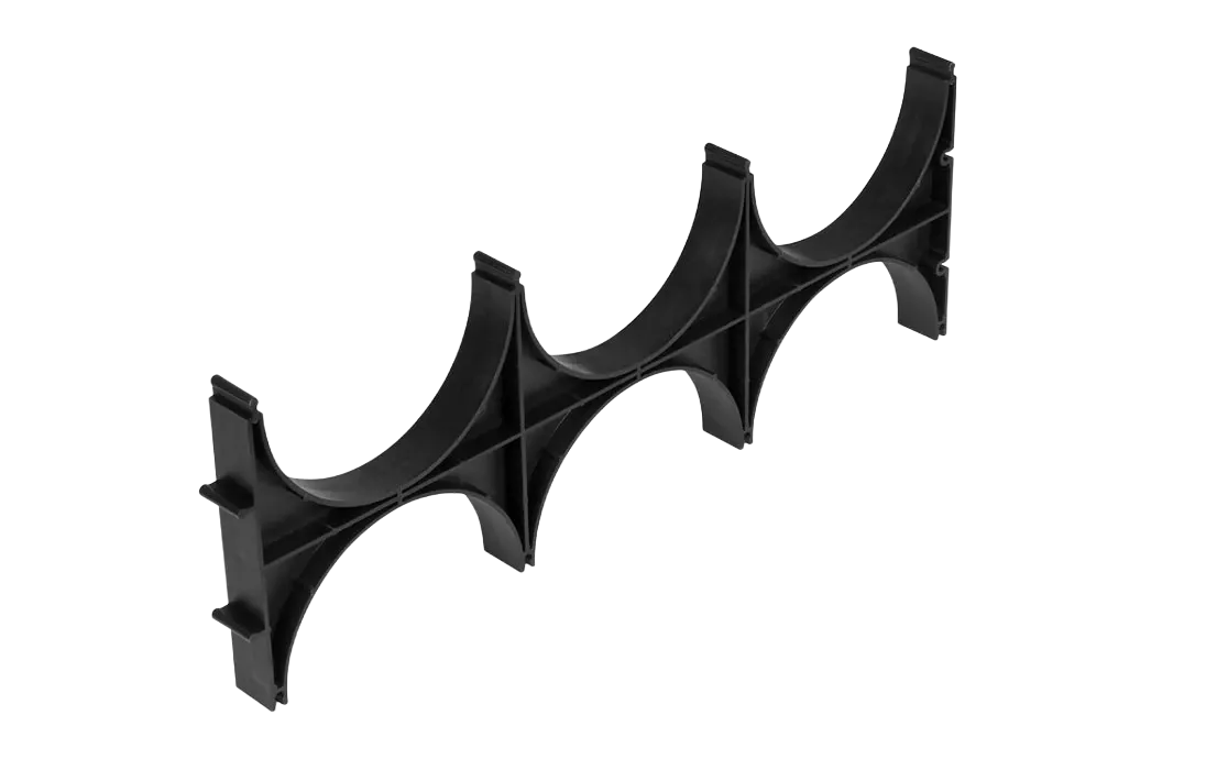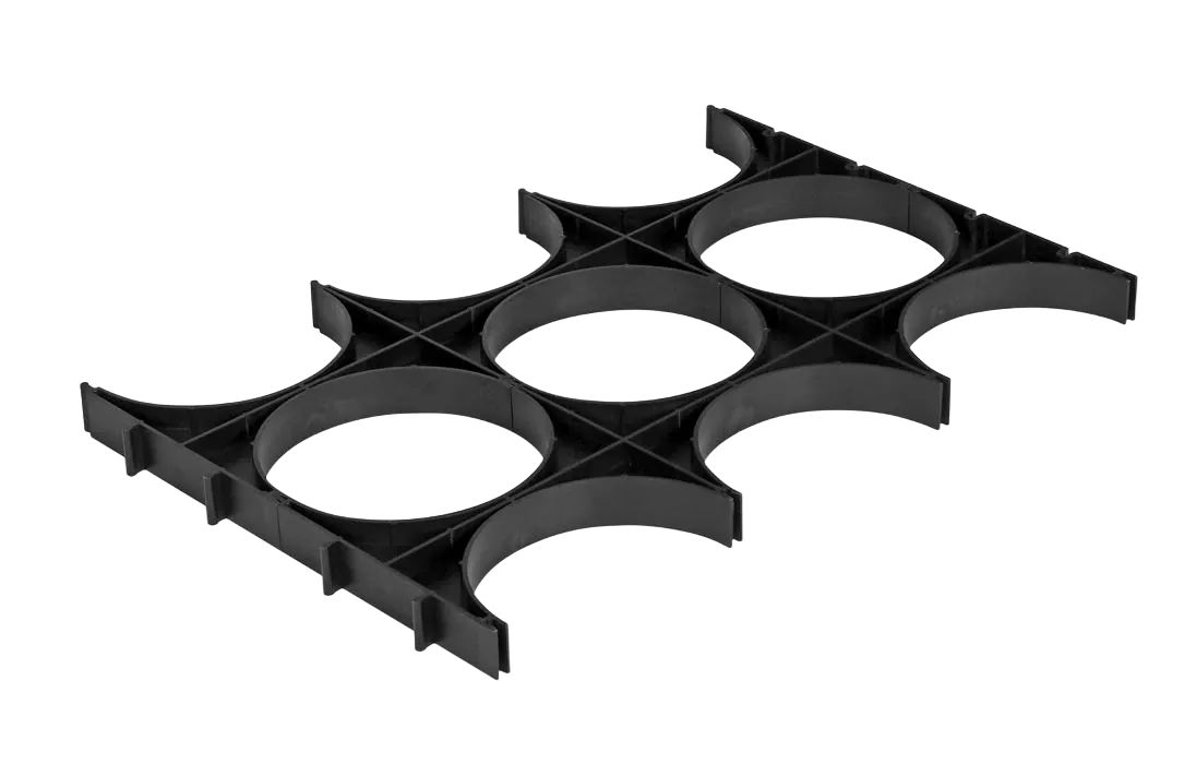 Использование кластеров при одновременной прокладке нескольких труб в одной траншее обеспечивает выдерживание равного заданного расстояния между трубами, препятствуя их смещению при засыпке песком, исключает возможность заломов плети трубопроводов, тем самым предупреждая проблемы с протяжкой кабеля.