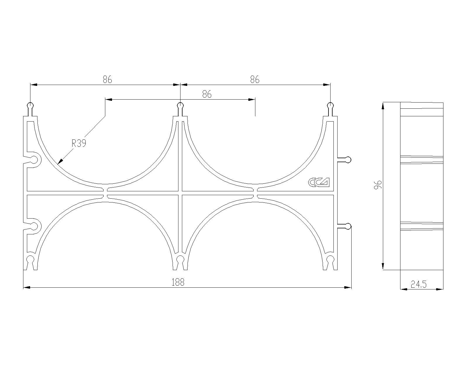 Кластер представляет собой решетчатое изделие с ложементами для укладки труб, выполненное из пластика. На корпусе кластера имеются специальные выступы и пазы для соединения нескольких кластеров в единый блок при прокладке большего количества каналов.