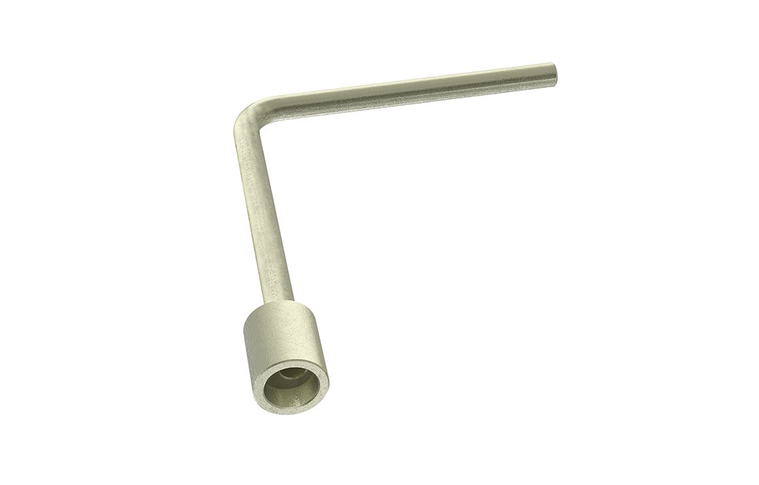 Представляет собой конструкцию, состоящую из рукоятки и насадки с эксцентрично расположенным отверстием. Для защиты металла от коррозии, ключ имеет гальваническое покрытие.
