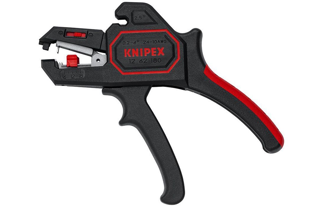 12 62 180 Автоматический стриппер для удаления изоляции. Зачистка кабелей из стандартных материалов при полностью автоматической регулировке. Точная настройка лезвия под особые требования по материалам или температуре. Компактный, удобный и лёгкий инструмент для работы с кабелями распространённых сечений и материалов. Для одножильных, многожильных и тонких проводов сечением 0,2 - 6 мм² со стандартной изоляцией. Удлиненная форма головки для применения в труднодоступных местах. С кабелерезом - для медных и алюминиевых проводов сечением макс. до 2,5 мм². Ограничитель с регулировкой длины в диапазоне 6,0 – 18,0 мм - для удаления изоляции на одинаковую величину при серийных операциях.