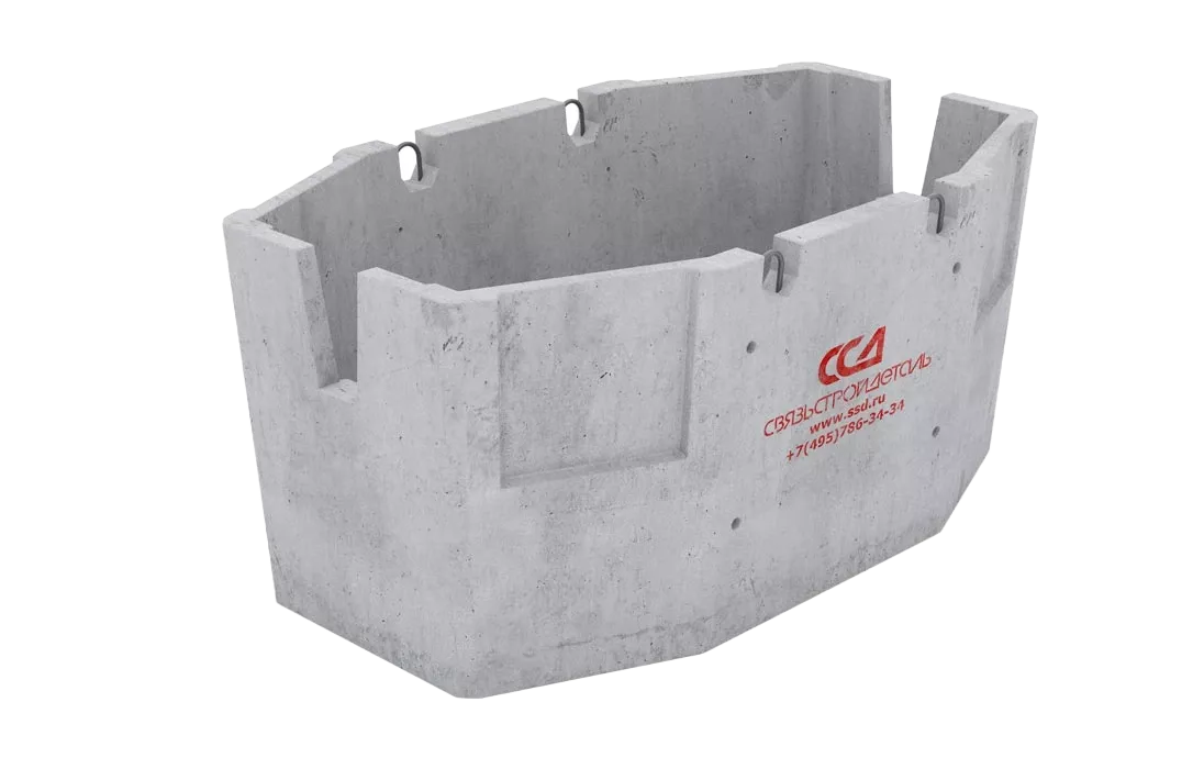 Колодец имеет в сечении восьмиугольную форму и состоит из двух элементов – верхней и нижней половин. На элементах колодца имеются петли для строповки при погрузке и разгрузке их с автомобиля, а также для опускания в котлован. Перекрытие верхнего элемента дополнительно армировано и содержит круглое отверстие диаметром 600 мм для формирования горловины с люком. В основании нижней половины колодца с внутренней стороны расположена прямоугольная ниша. При необходимости, ее стенку вырезают для создания дренажа. На внутренних поверхностях торцевых стенок элементов колодца имеются ниши. В центре ниш расположены технологические отверстия для ввода двух труб с внутренним диаметром 100 мм. Для ввода и вывода каналов на наружных поверхностях боковых стенок колодца расположены по две ниши, с каждой из сторон.