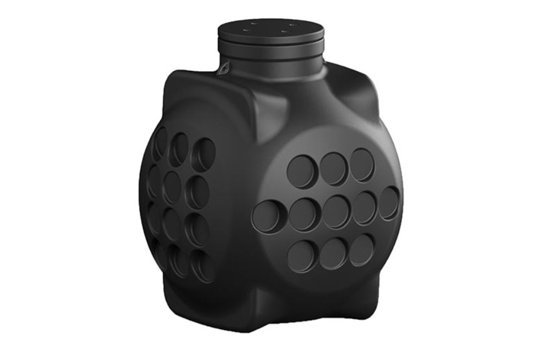 Представляет собой цельнолитое изделие шарообразной формы, без сварных швов, обеспечивающих его герметичность. Корпус колодца имеет ребра жесткости для придания ему повышенной прочности. С четырех сторон, на стенках колодца имеются специально сформированные контуры для ввода гладкостенных и гофрированных труб. Каждая стенка содержит по 6-ть таких контуров диаметром 170 мм.