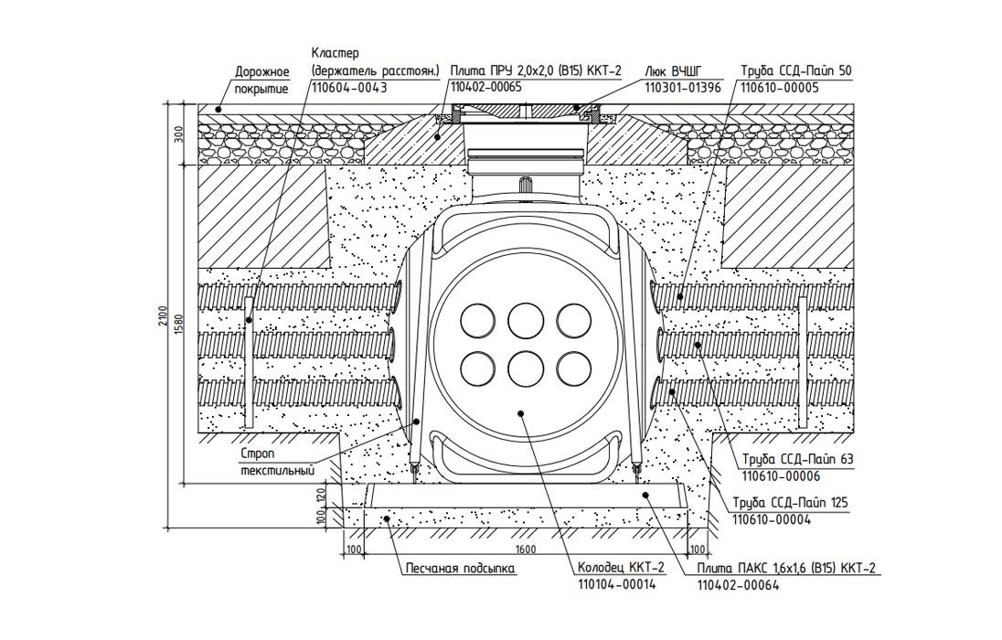 Предназначен для строительства электрических и телекоммуникационных кабельных сетей в качестве смотрового устройства кабельной канализации, с возможностью обеспечения вывода горловины на поверхность, а также в качестве подземных контейнеров с целью размещения пассивного оборудования.