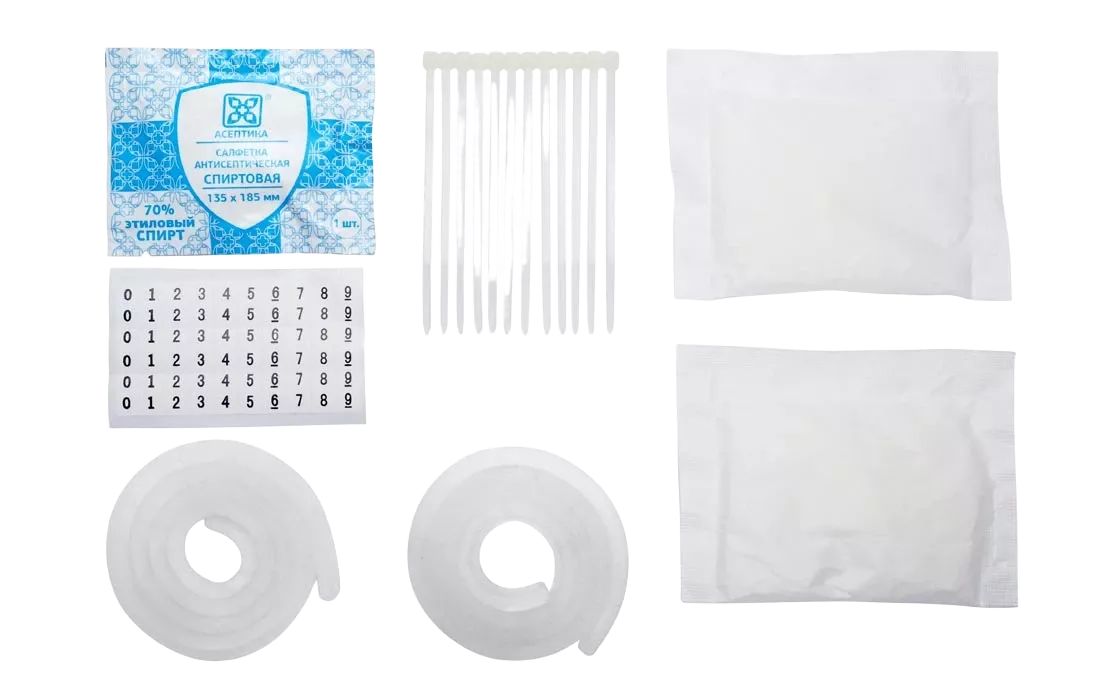 В комплект входит уплотнительный шнур, устанавливаемый на оголовник, маркеры и стяжки, которые могут потребоваться при проведении ремонтных работ и бумажный пакет силикагеля, упакованный в дополнительный герметичный п/э пакет. Перед повторным закрытием муфты пакет с силикагелем необходимо извлечь из герметичного пакета и разместить внутри муфты.