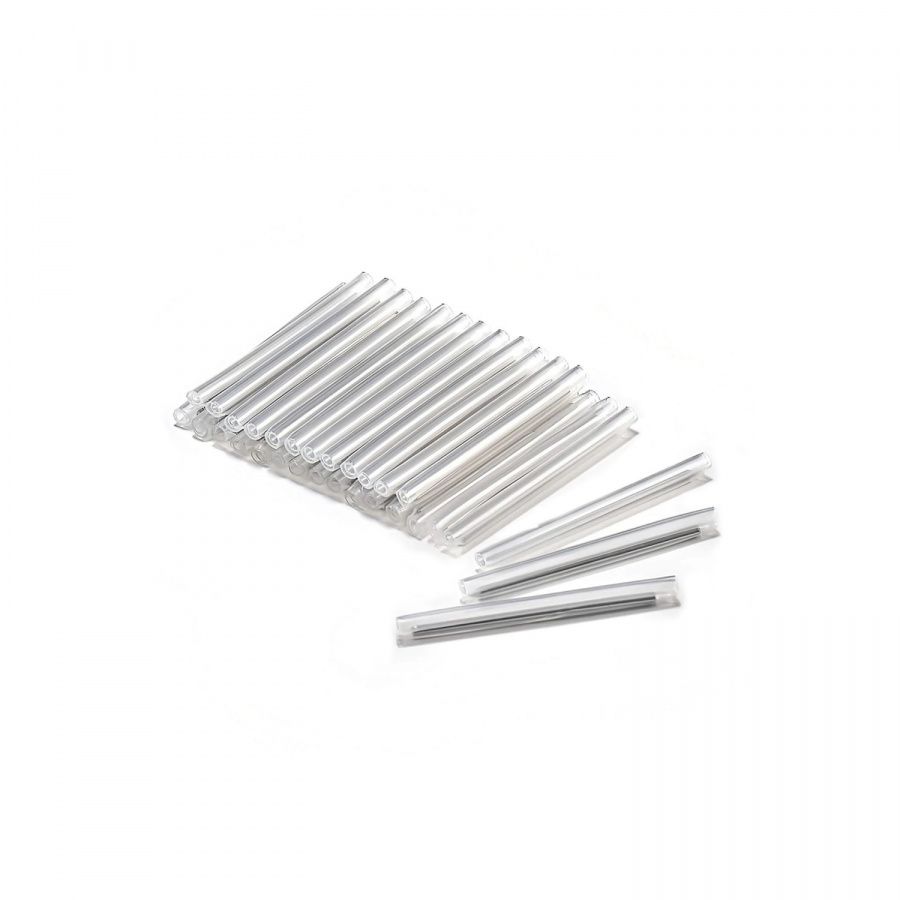 Комплект для защиты сварного стыка КДЗС состоит из пластиковых трубок с подклеивающим слоем и металлического стержня для жесткости. При нагревании в печке сварочного аппарата трубки усаживаются, закрепляясь на волокне и защищая сварное соединение волокна.