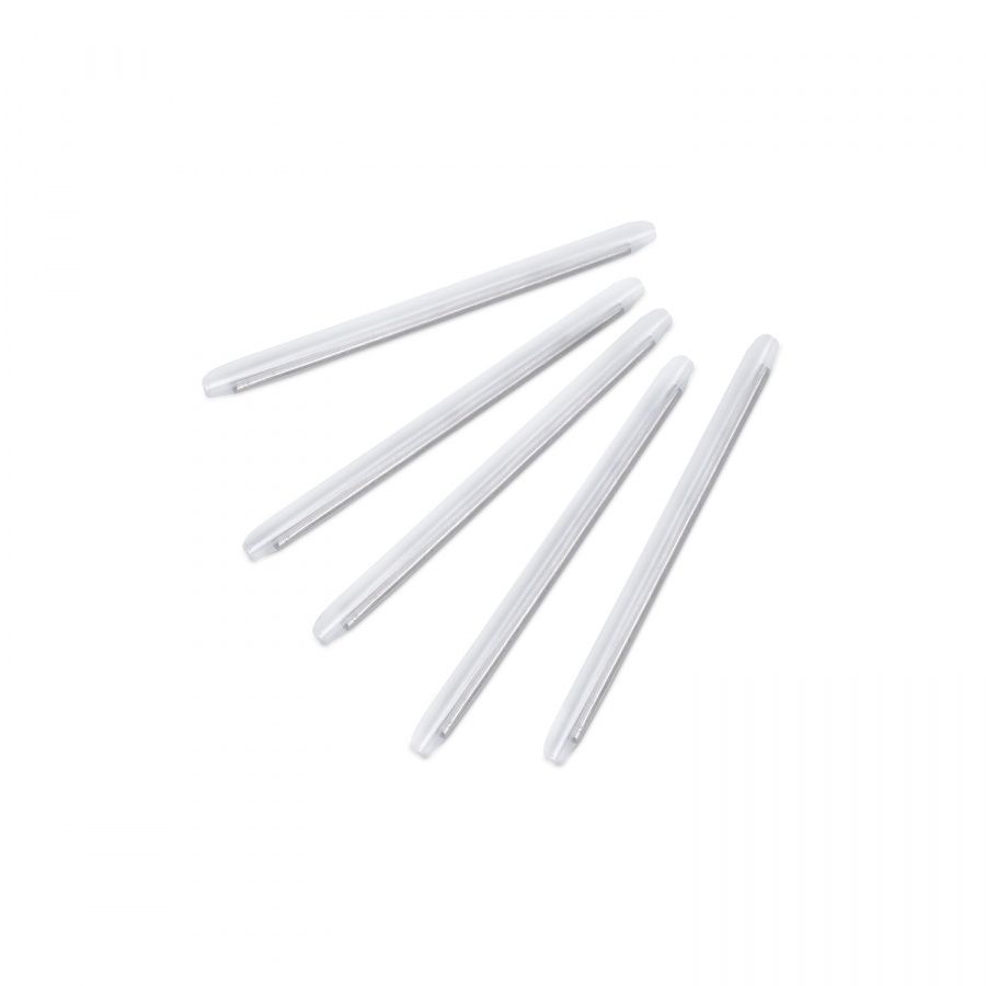 Комплект для защиты сварного стыка КДЗС состоит из пластиковых трубок с подклеивающим слоем и металлического стержня для жесткости. При нагревании в печке сварочного аппарата трубки усаживаются, закрепляясь на волокне и защищая сварное соединение волокна.