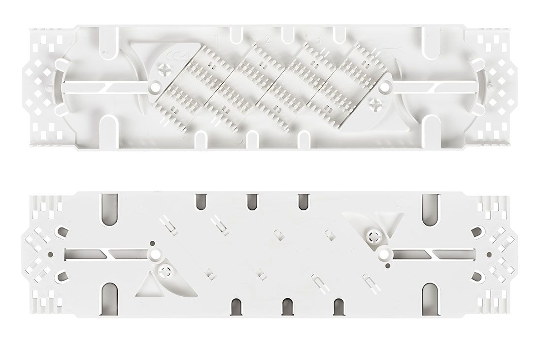 Конструкция кассеты позволяет заводить модули с ОВ с любого из четырёх углов и осуществлять изменение направления укладки запаса волокон. Свободная укладка дает возможность трехкратной переделки сварки волокна без уменьшения числа витков запаса.