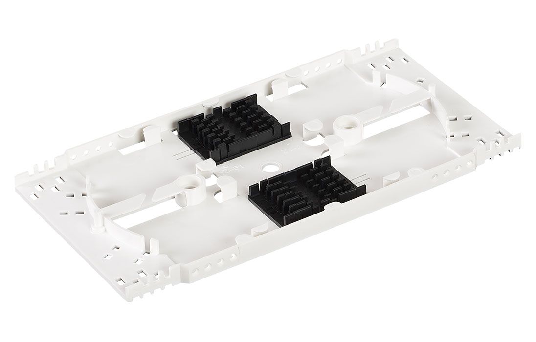На кассете установлены 2 ложемента Л12-6030 черного цвета для укладки гильз КДЗС-6030. Цвет черный - принят для всех ложементов производства АО «Связьстройдеталь» для гильз КДЗС диаметром 3 мм после усадки.