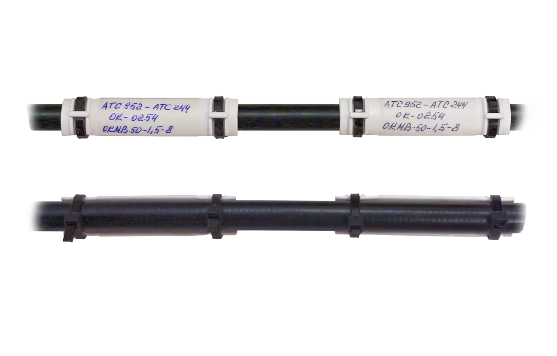 В комплектах используются детали, изготовленные из полимерных материалов, выдерживающих условия эксплуатации кабелей в канализации и коллекторах. КМП выдерживает длительное воздействие горячей воды при прорыве теплотрасс без утраты надписи, а также не подвержен коррозии.