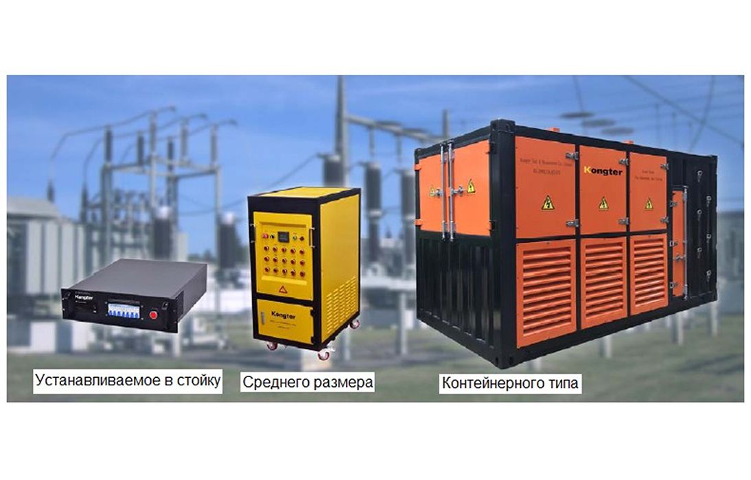 Компания Kongter предлагает целую линейку батарей нагрузки переменного тока, включая только резистивные и комбинированные резистивно-реактивные устройства размером от небольших, устанавливаемых в стойку, моделей до огромных устройств контейнерного типа. Наиболее распространены следующие типы: