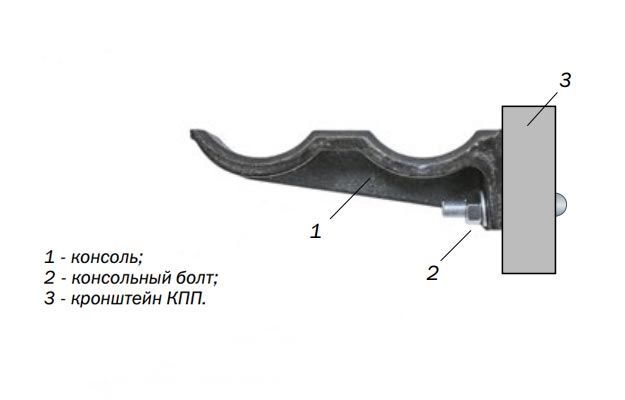 Двухместная кабельная чугунная консоль крепится к кронштейнам (КПП, УКПП) при помощи специальных консольных болтов с шайбой и гайкой.