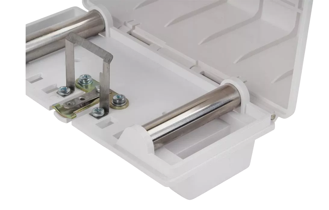 Конструкция узла крепления кабелей в коробках при необходимости обеспечивает надежный электрический контакт с экраном входящего распределительного кабеля, что облегчает его заземление. Ввод кабелей осуществляется через вырез в крышке, что упрощает монтаж и позволяет использовать для абонентской разводки не только провода ТРП/ТРВ, но и четырехпарные кабели типа UTP/FTP.