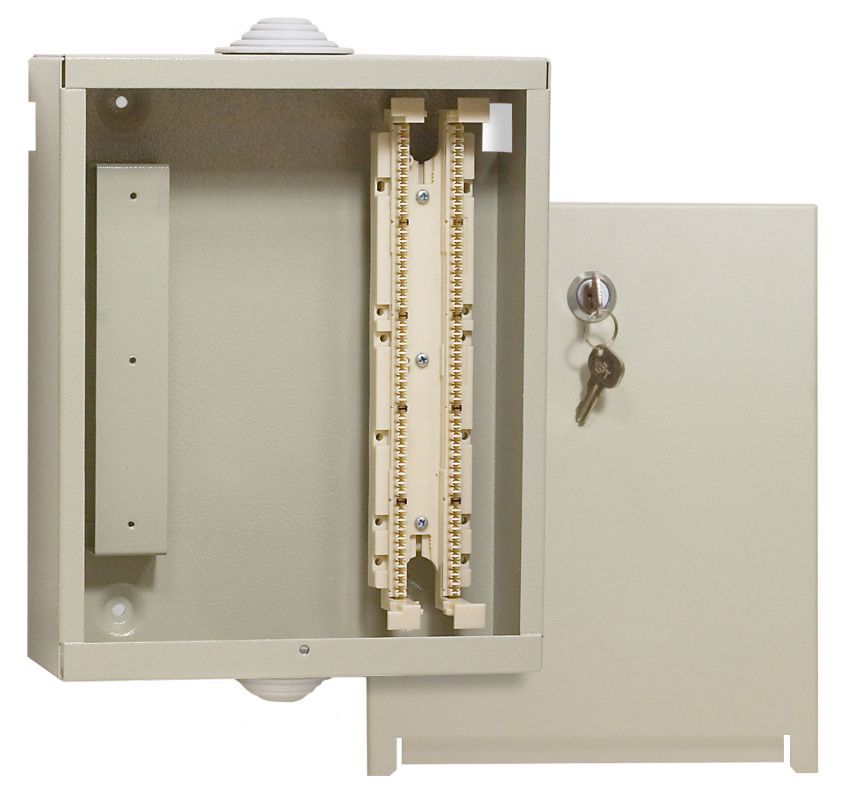 Коробка распределительная КР-100, 100 пар, блоки типа 110 (без блоков, без модулей, с замком) ССД