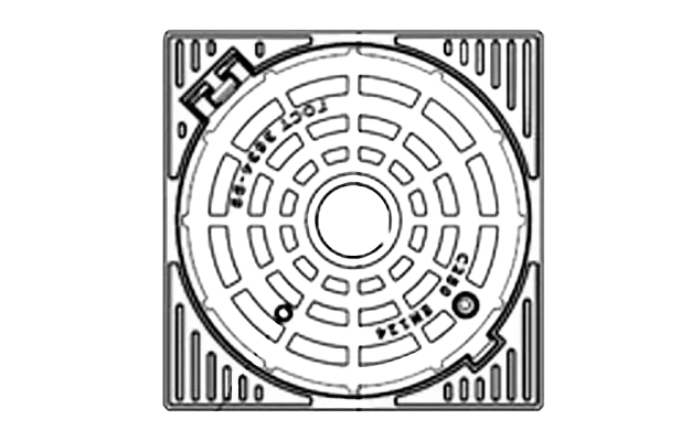Корпус люка квадратный тяжелого типа из высокопрочного чугуна с шаровидным видом графита «ВЧШГ». Корпус люка оснащен Т-образной вибрационной прокладкой для более плотного прилегания крышки.