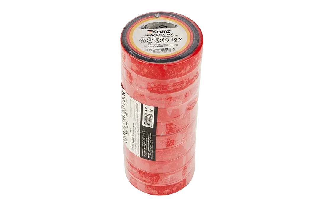 KR-09-2004 Изолента ПВХ KRANZ 0.13х15 мм, 10 м, красная упаковка 10 роликов