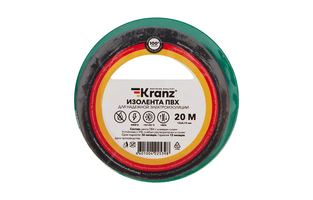 Изолента KRANZ предназначена для электрической изоляции, цветной маркировки, соединения, защиты от внешних факторов и герметизации кабелей, проводов и шнуров.