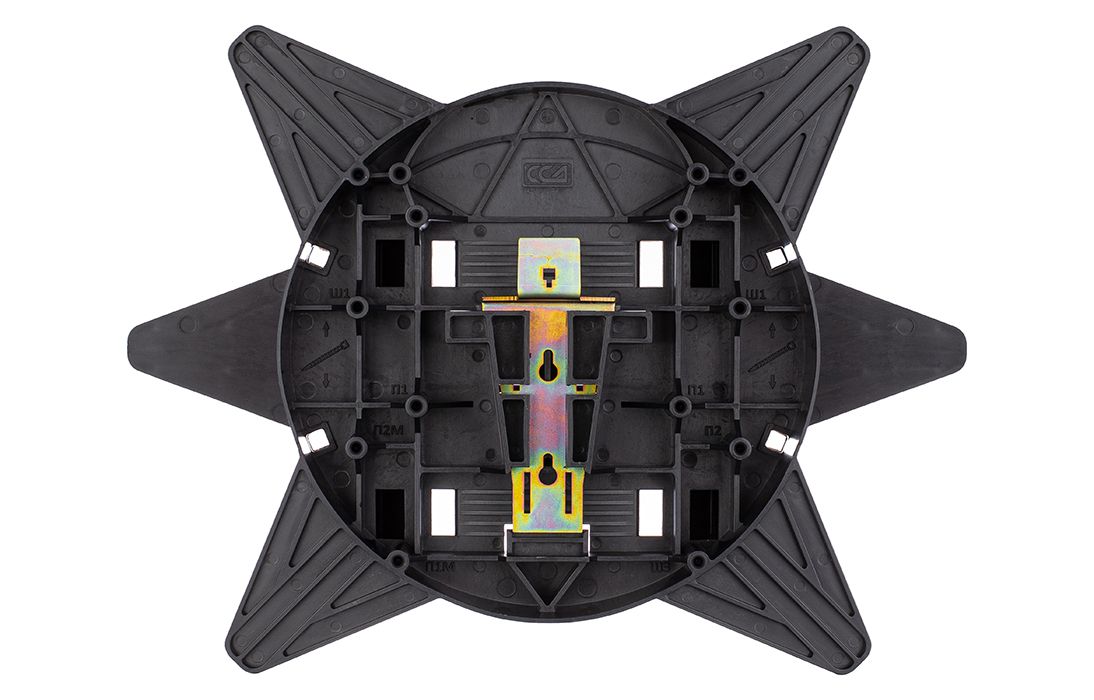 Конструкция кронштейна позволяет снимать муфту с УПМК-П и устанавливать ее обратно без необходимости повторной фиксации, без использования специального инструмента и расходных материалов.