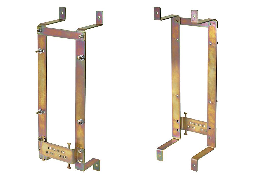 Крепление кронштейна к стенам осуществляется с помощью шурупов, а к столбовым опорам монтажной металлической лентой.