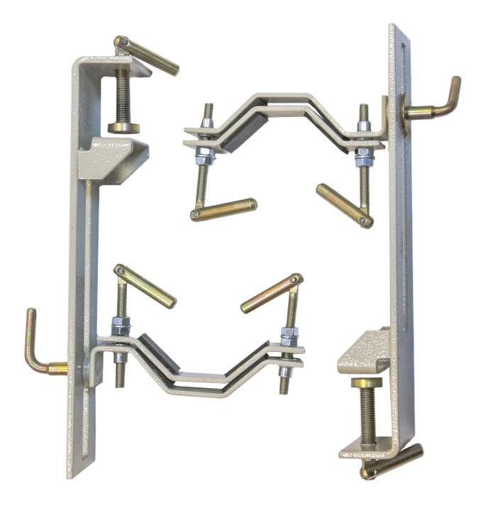 Предназначен для закрепления на рабочем столе муфт МОГ для удобства проведения монтажных работ. С помощью двух кронштейнов муфту можно установить и закрепить за оголовники в горизонтальном положении в непосредственной близости к аппарату для сварки ОВ. При герметизации муфты монтажные кронштейны удерживают муфту в неподвижном положении в течение всего процесса усадки и остывания трубок ТУТ.